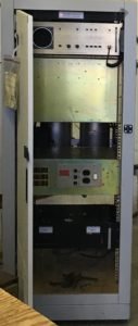 The repeater is a Motorola MSF-5000 running at 110 watts. The repeater is connected to a Sinclair Technologies Q202 duplexer, which provides over 80db of isolation. All of this is connected to 7/8 hardline which runs to a 4-bay dipole, providing around 7dbd of gain. The link radio is a Motorola mobile radio, attached to a directional antenna on the building. All of this is controlled by a Link Communications controller.
